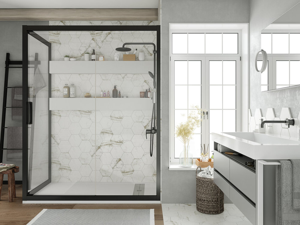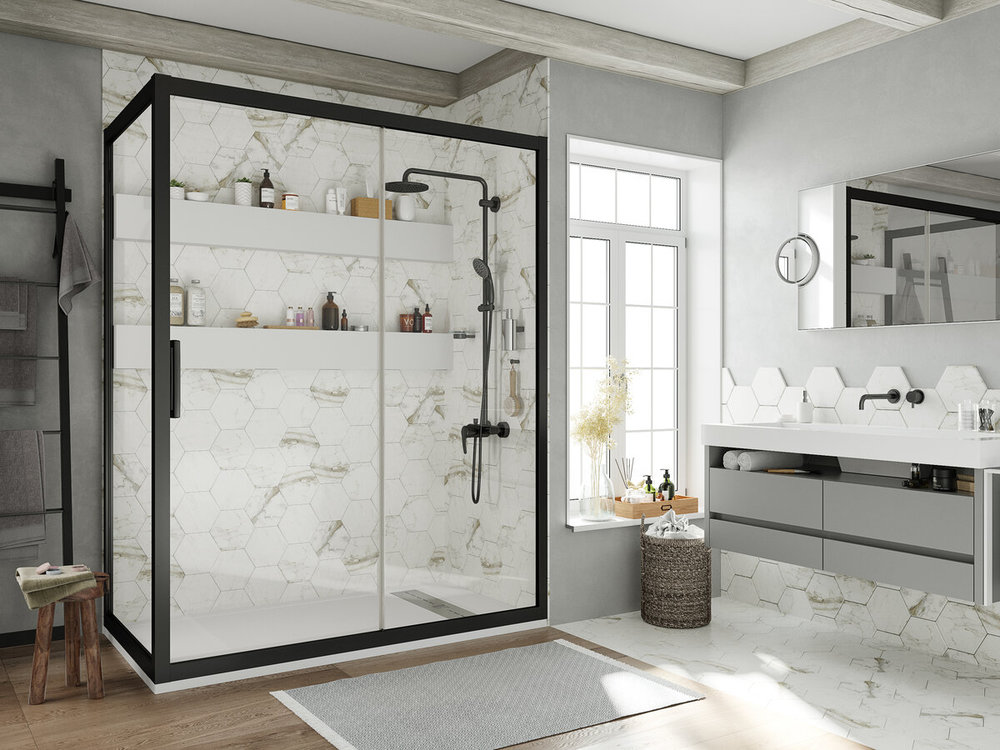 Душевой уголок Stworki Эстерсунд DE019R90160200 160 x 90 см, профиль черный матовый, стекло прозрачное, 3GW182TTKK000