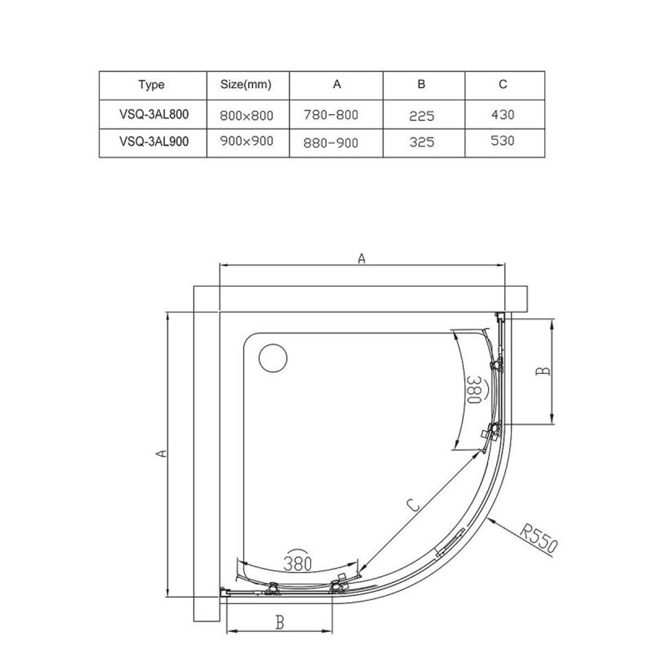 Душевой уголок Vincea Alpha, 90 x 90 x 190 см, четверть круга, стекло прозрачное, профиль черный, VSQ-3AL900CLB