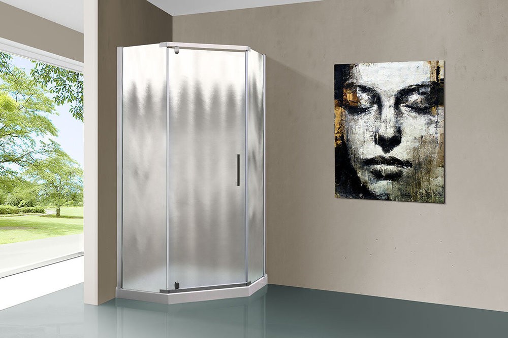 Душевой уголок Vincea Stresa VSP-1S900CH, 90 x 90 см, пятиугольный, дверь распашная, стекло шиншилла, хром