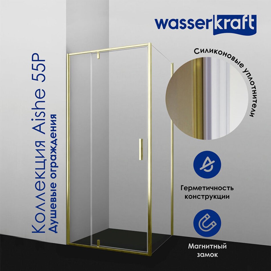 Душевой уголок WasserKRAFT Aisch 55P 55P10, 120 х 100 х 200 см, профиль матовое золото, стекло прозрачное