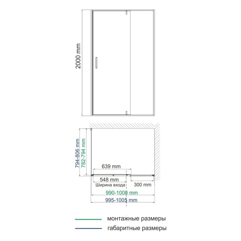 Душевой уголок WasserKRAFT Aisch 55P 55P17, 100 х 80 х 200 см, профиль матовое золото, стекло прозрачное