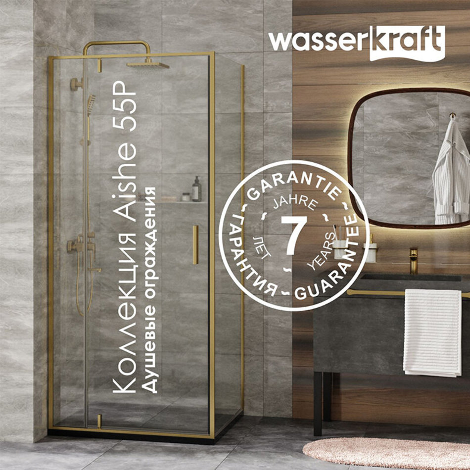 Душевой уголок WasserKRAFT Aisch 55P 55P19, 100 х 100 х 200 см, профиль матовое золото, стекло прозрачное