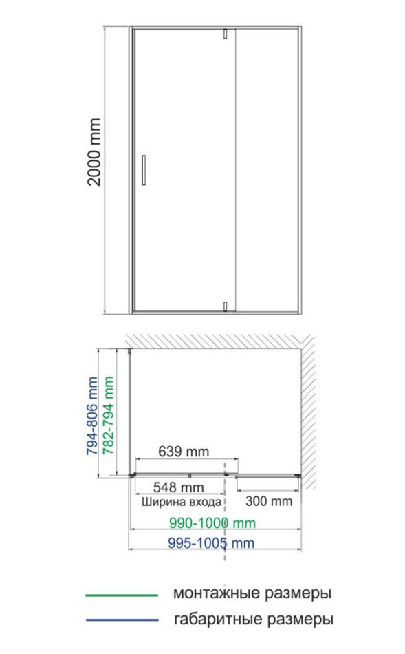 Душевой уголок WasserKRAFT Elbe, 100 х 80 см, профиль черный, стекла прозрачные, 74P17