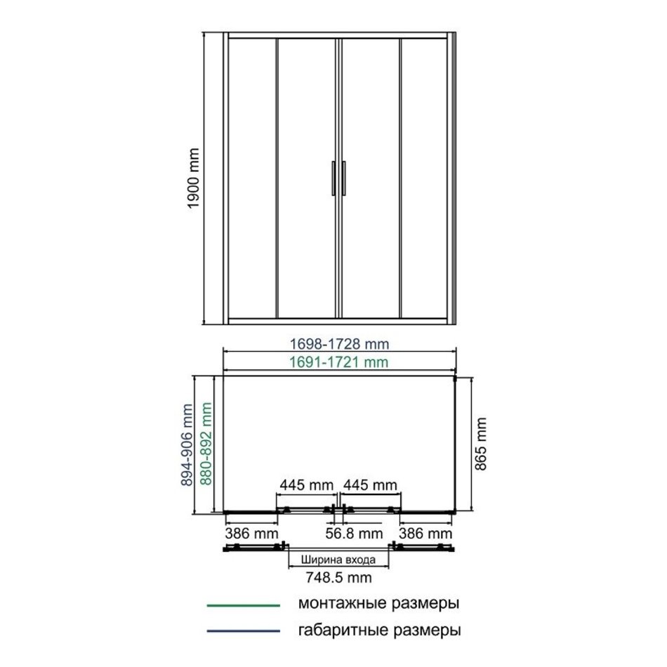 Душевой уголок WasserKRAFT Lippe 45S 45S54, 170 х 90 см, прозрачное стекло, профиль серебристый
