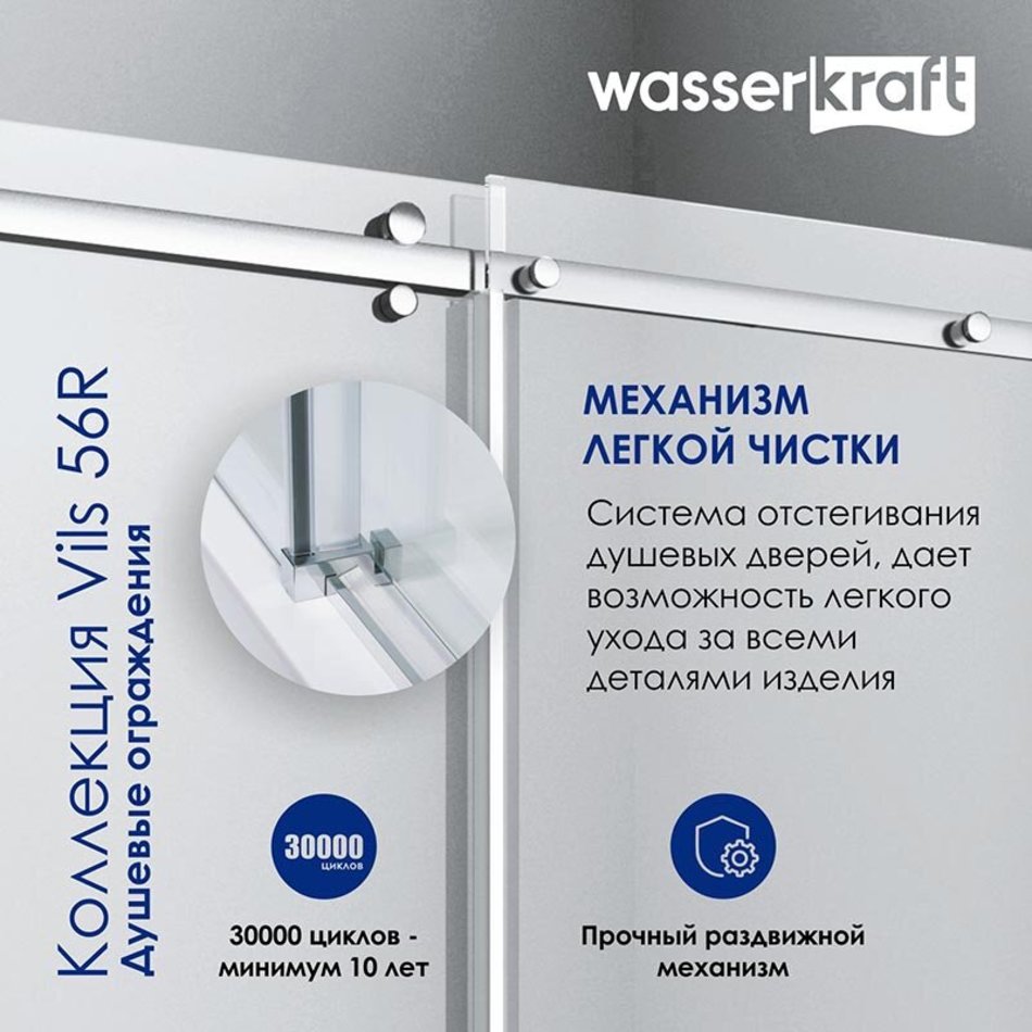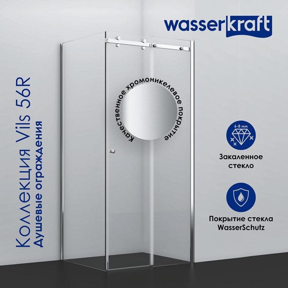 Душевой уголок WasserKRAFT Vils 56R 56R22, 100 х 90 х 200 см, профиль серебристый, стекло прозрачное