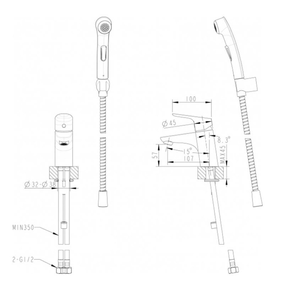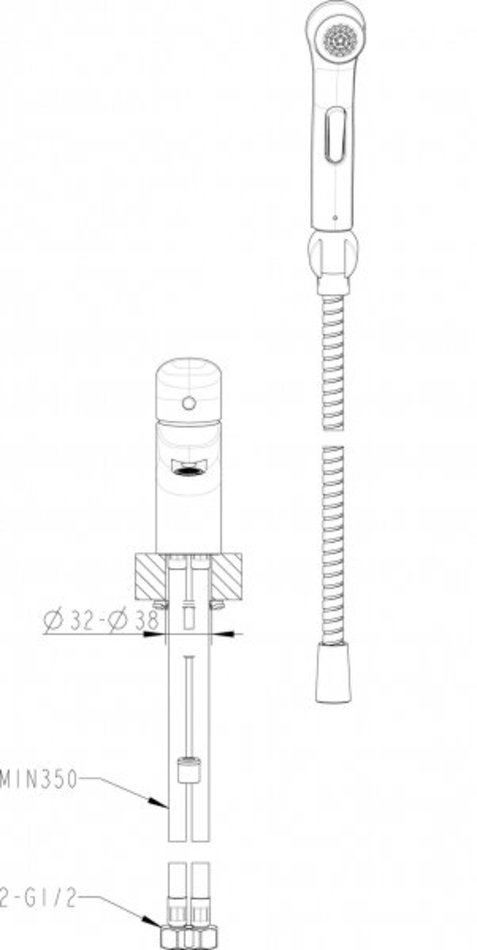 ВНИМАНИЕ! Шланг и лейка не рассчитаны на постоянное запорное давление, после использования необходимо закрыть подачу воды в смесителе.