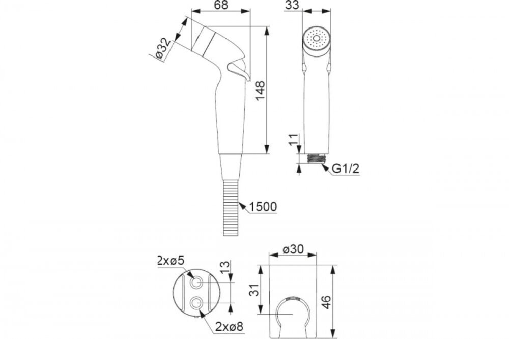 Компактный гигиенический душ с держателем в современном дизайне который впишется в любой интерьер и будет сочетаться с другими элементами сантехники.