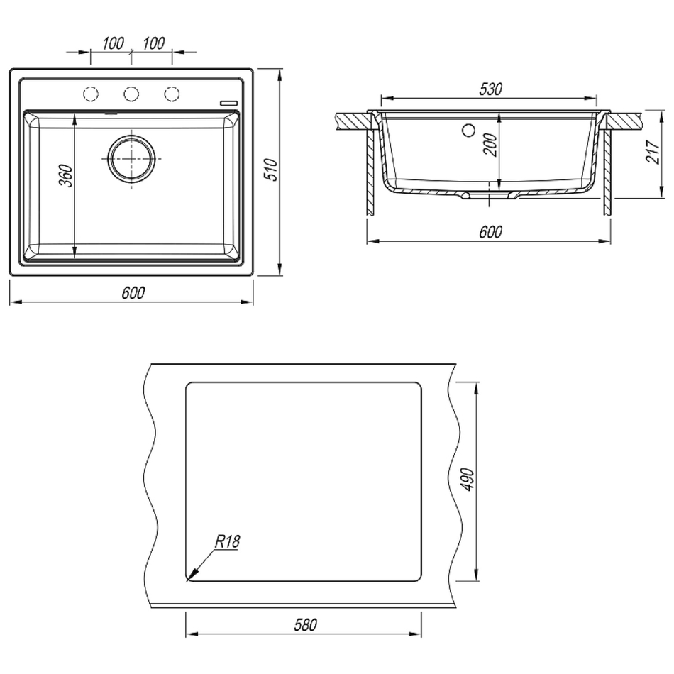 Мойка кухонная Florentina Липси 20.120.D0600.302 60 см, антрацит