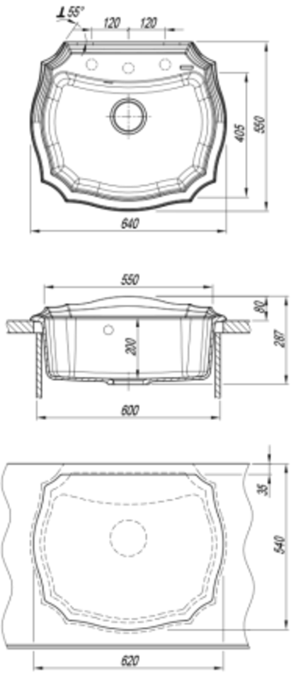 Мойка кухонная Florentina Эмилия-640, цвет грей