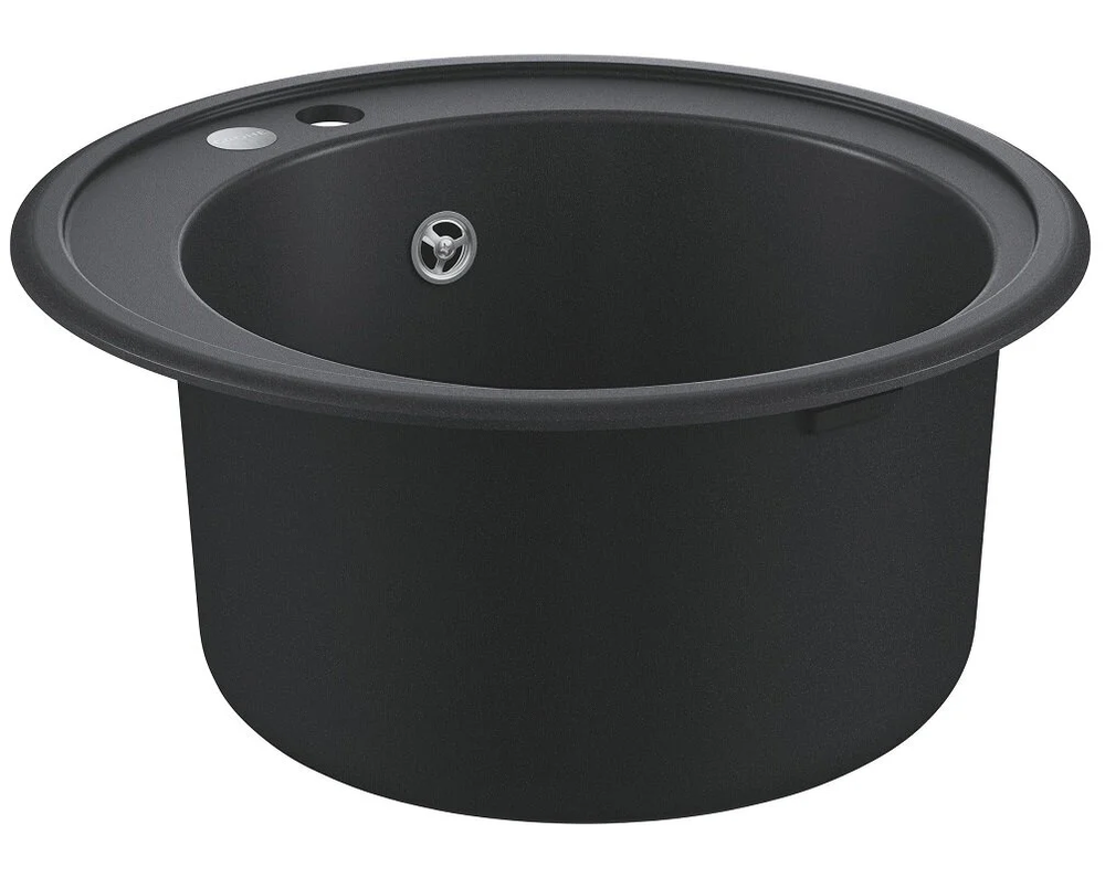 Мойка кухонная из искусственного гранита Grohe K200 31656AP0, 51 см, с корзинчатым вентилем и донным клапаном, черный гранит