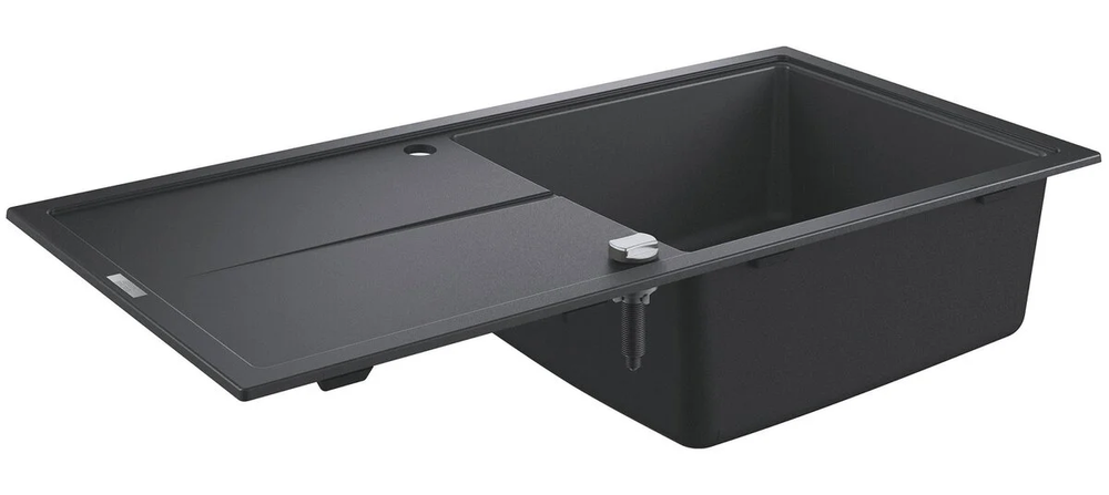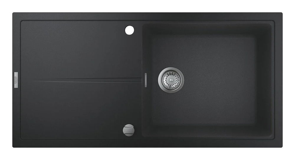 Мойка кухонная из искусственного гранита Grohe K400, 31641AP0, 100 x 50 см, с корзинчатым фильтром и донным клапаном, черный гранит