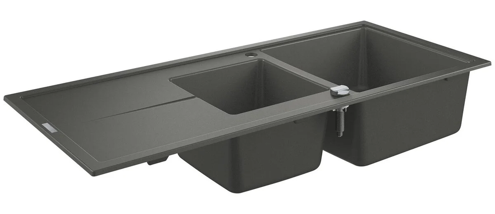 Мойка кухонная из искусственного гранита Grohe K400, 31643AT0, 116 x 50 см, с корзинчатым фильтром и донным клапаном, серый гранит