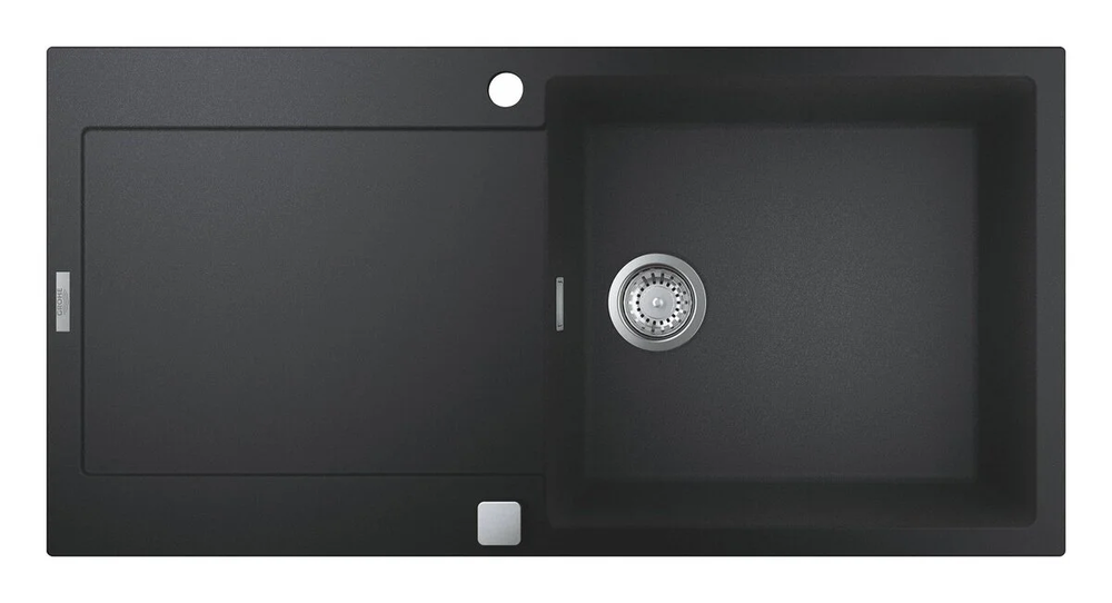 Мойка кухонная из искусственного гранита Grohe K500, 31645AP0, 100 x 50 см, с корзинчатым фильтром и донным клапаном, черный гранит