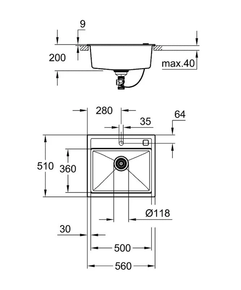 Мойка кухонная из искусственного гранита Grohe K700 31651AT0, 56 x 51 см, с корзинчатым вентилем и донным клапаном, серый гранит