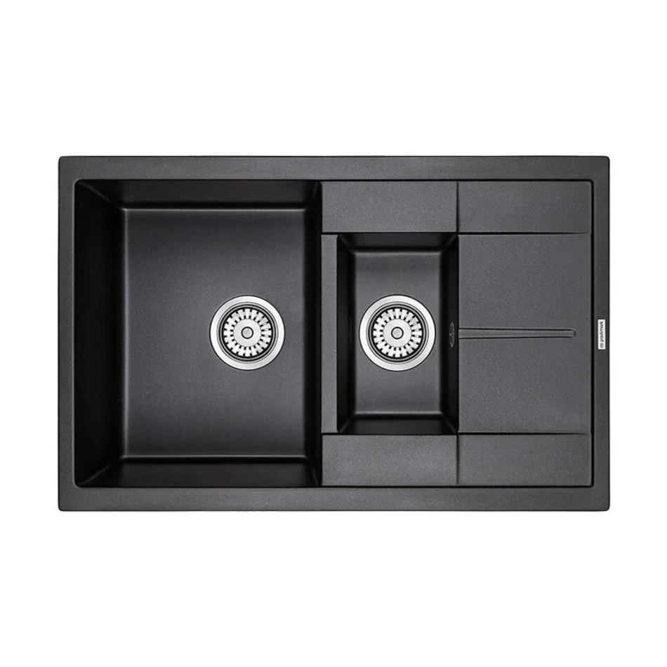Мойка кухонная Paulmark Feste PM237850-BL, 77.5 см, кварцевая, черный