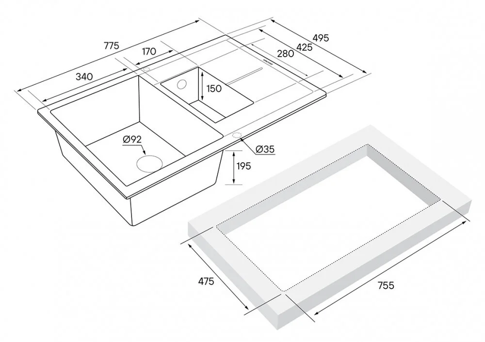 - Мойка кухонная, 1 чаша+дополнительная