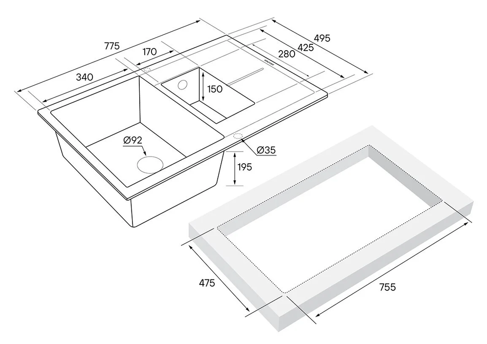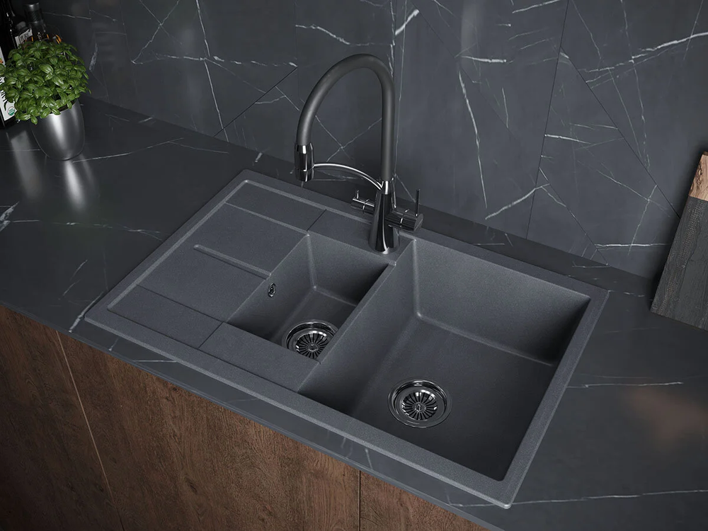 Мойка кухонная Paulmark Feste PM237850-DG, 77.5 см, кварцевая, графит