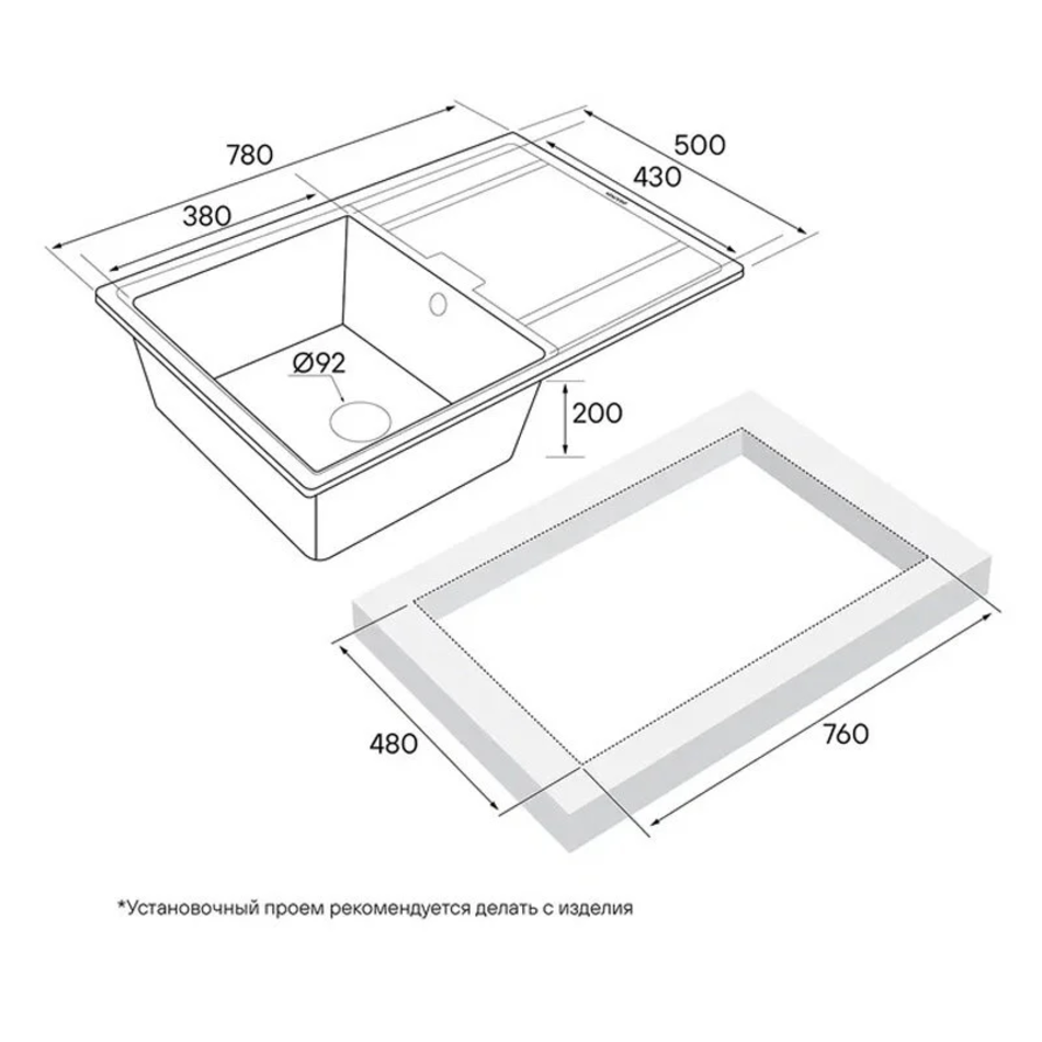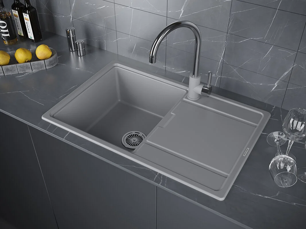 Мойка кухонная Paulmark Flugen PM217850-GRM, 78 см, кварцевая, серый металлик