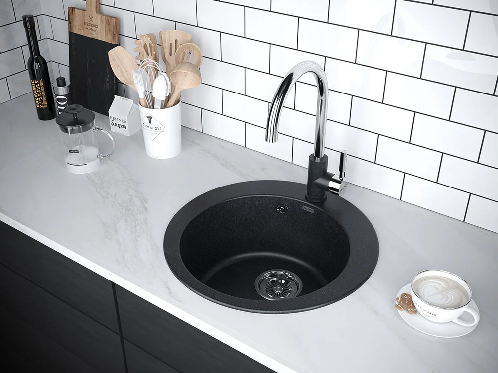 Мойка кухонная Paulmark Gelegen PM404800-BLM, 48 см, кварцевая, черный металлик