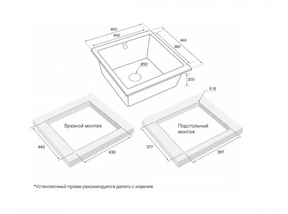 - Размер выреза: 40 x 38.5 см