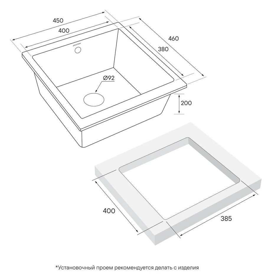 Мойка кухонная Paulmark Gera PM104546-GRM, 45 см, кварцевая, серый металлик