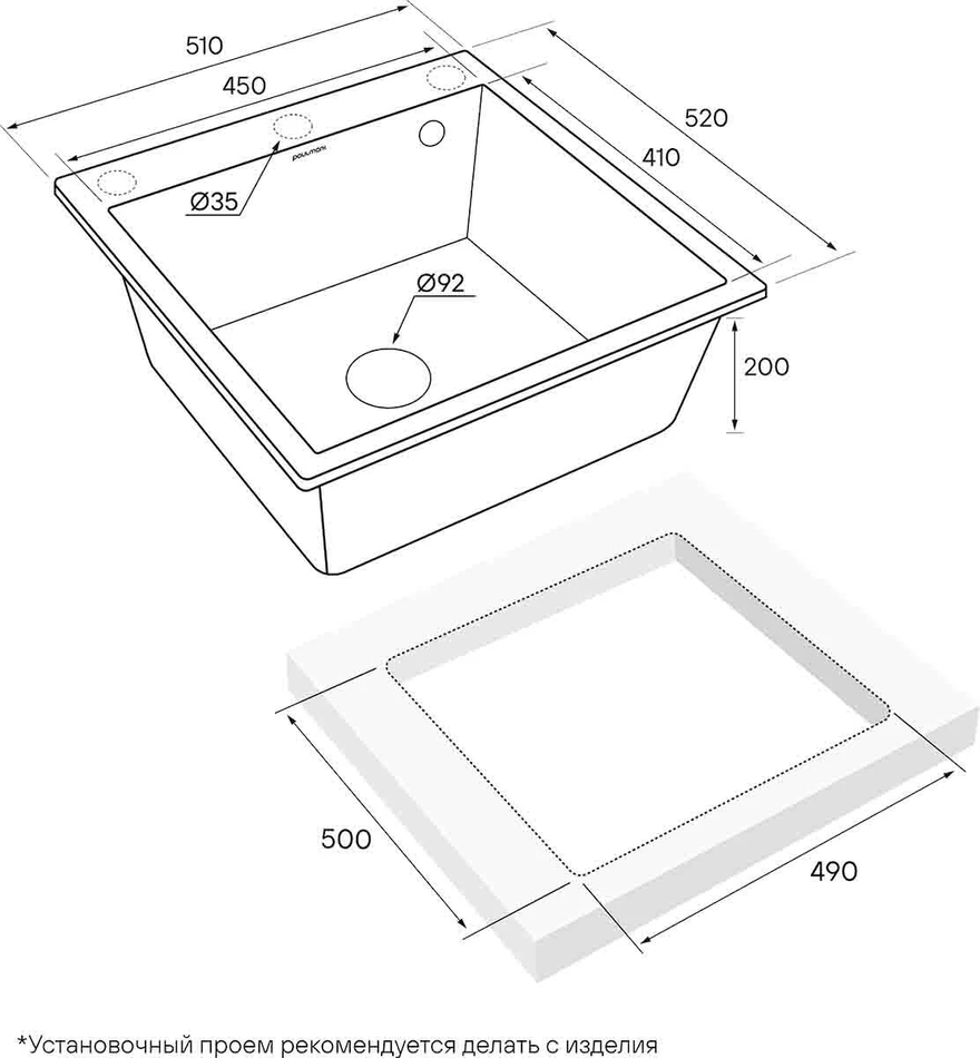 Мойка кухонная Paulmark Kante 50, PM105152-AN, искусственный камень, антрацит