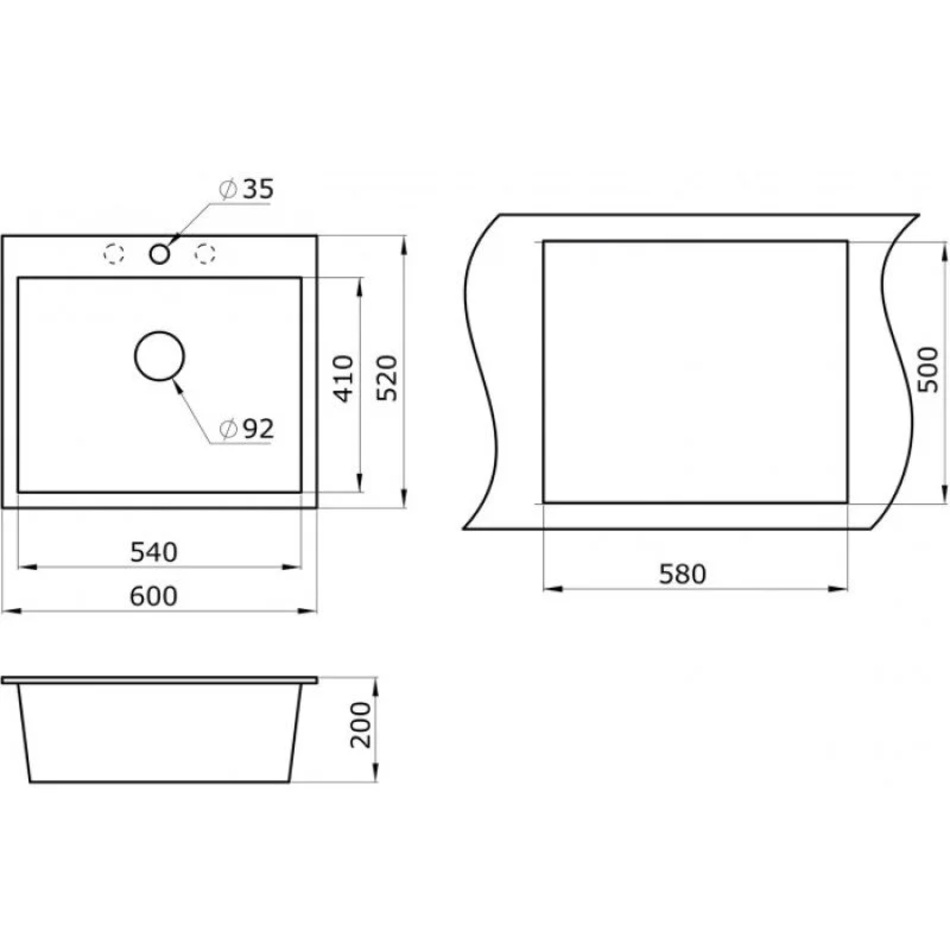 - Отверстие под смеситель: 1 намеченное отверстие