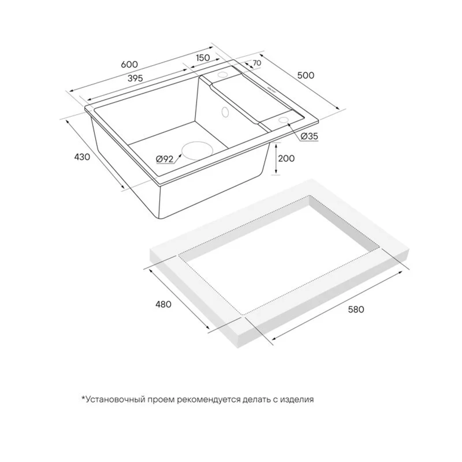 Мойка кухонная Paulmark Optimum PM216050-GR, 60 см, кварцевая, серый