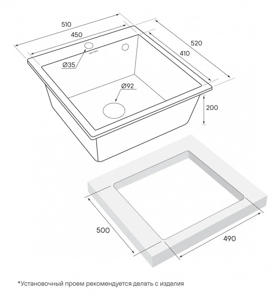 Мойка кухонная Paulmark Praktisch PM105152-BE, 51 см, кварцевая, бежевый