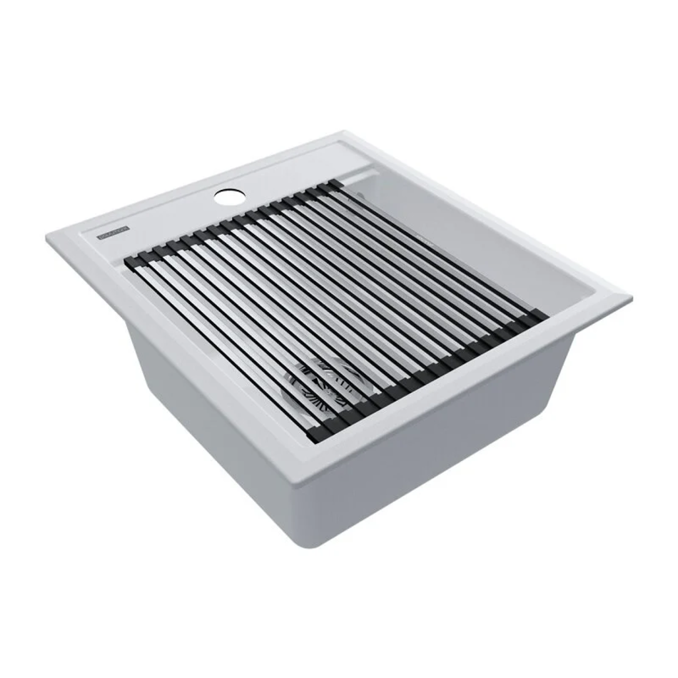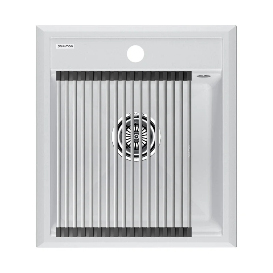 Мойка кухонная Paulmark Stepia 45 PM114651-WH+R375-BS, искусственный камень, с ролл-матом Step, белый
