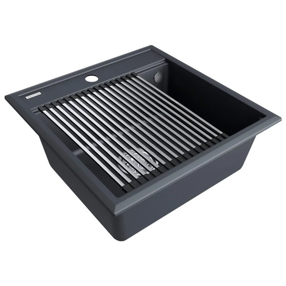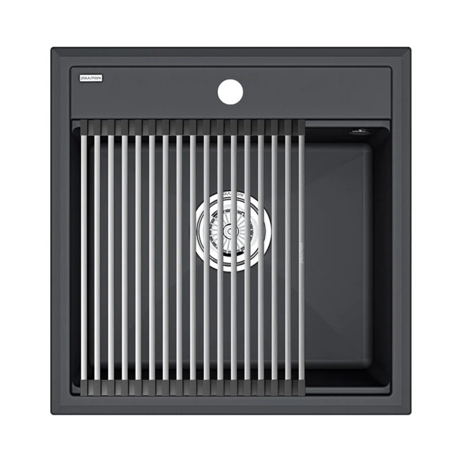 Мойка кухонная Paulmark Stepia 50 PM115051-BLM+R375-BS, искусственный камень, с ролл-матом Step, черный металлик