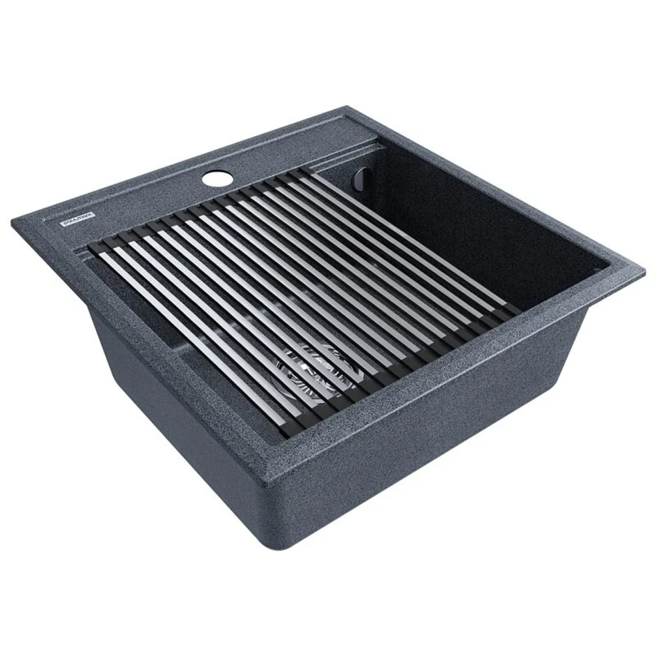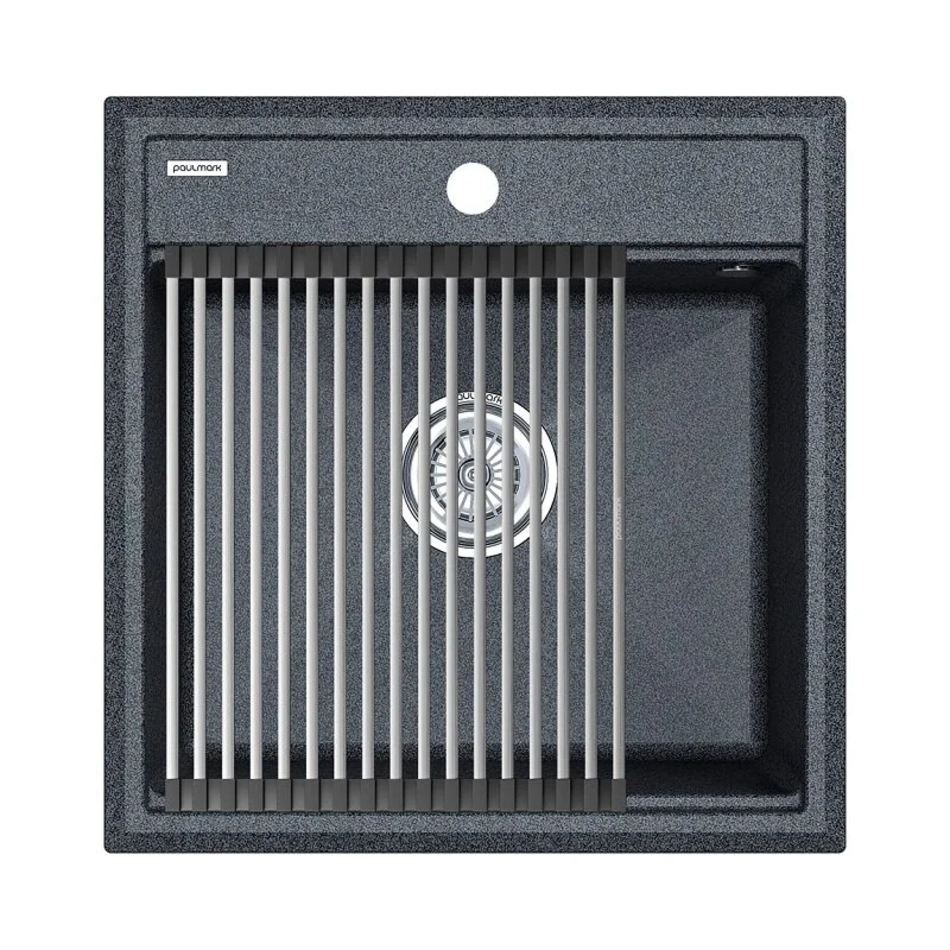 Мойка кухонная Paulmark Stepia 50 PM115051-DG+R375-BS, искусственный камень, с ролл-матом Step, графит