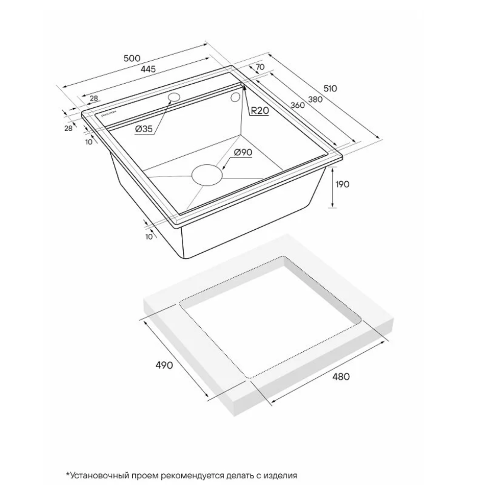 - Материал: IT-GRANIT (искусственный гранит)