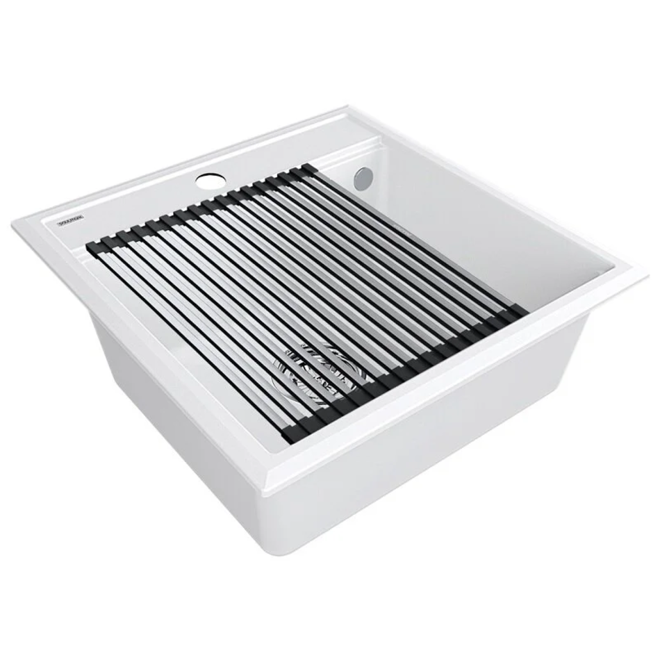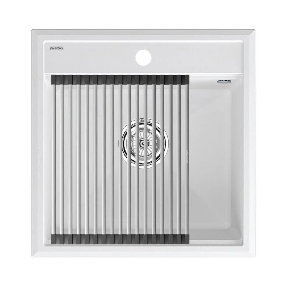 Мойка кухонная Paulmark Stepia 50 PM115051-WH+R375-BS, искусственный камень, с ролл-матом Step, белый