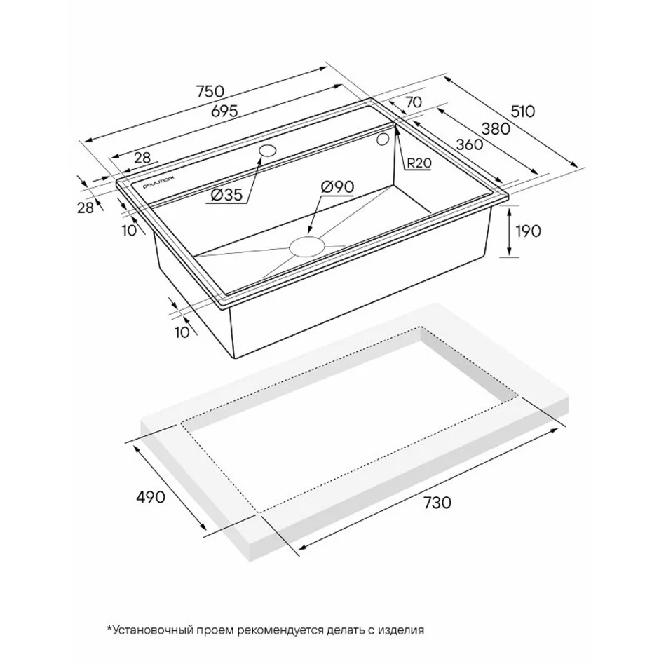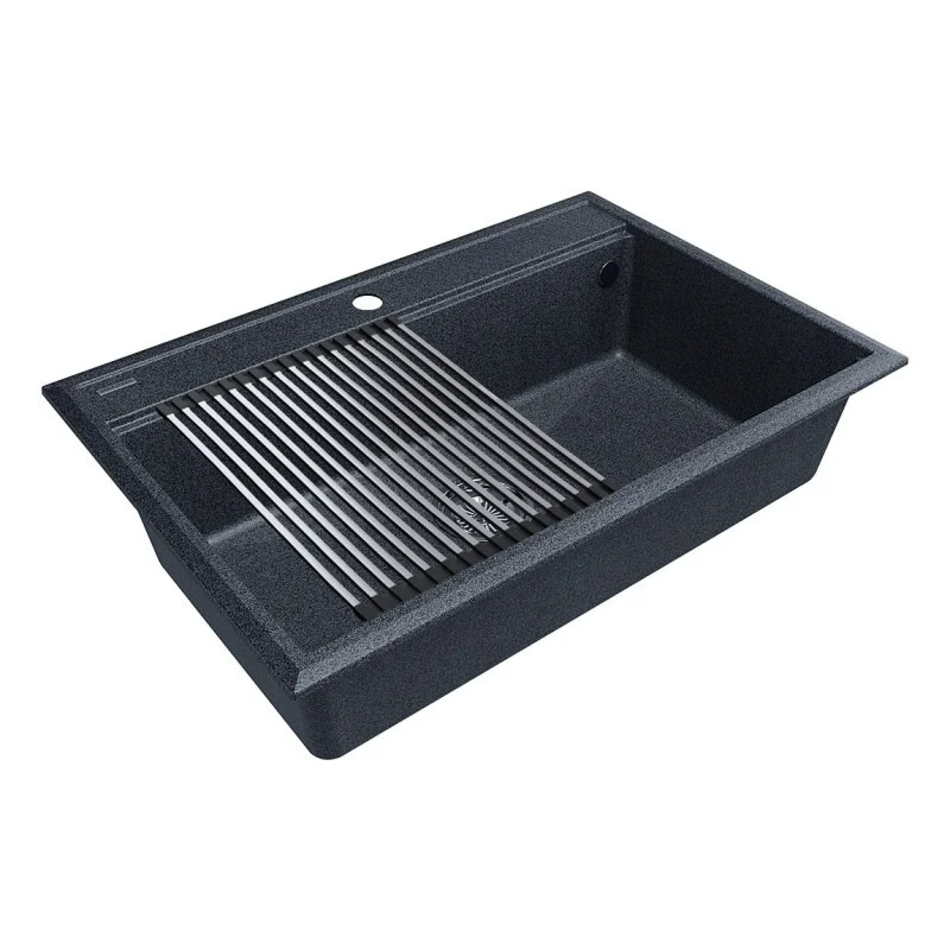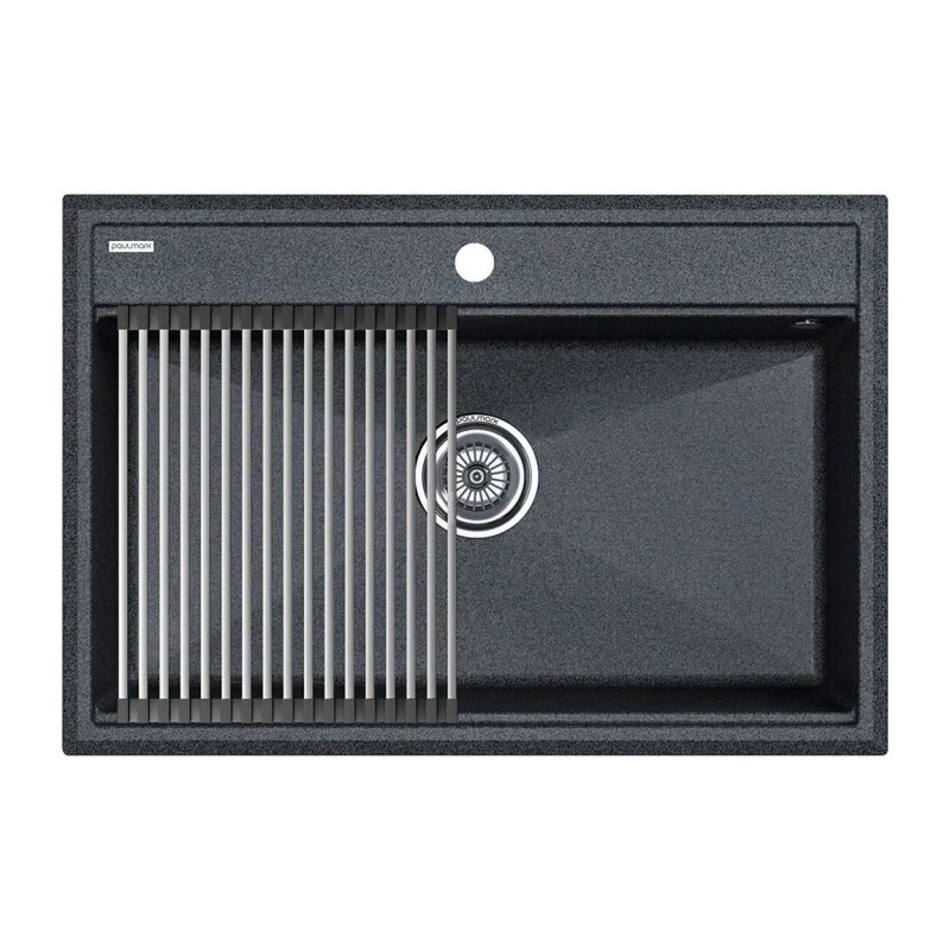 Мойка кухонная Paulmark Stepia 80 PM117551-DG+R375-BS, искусственный камень, с ролл-матом Step, графит