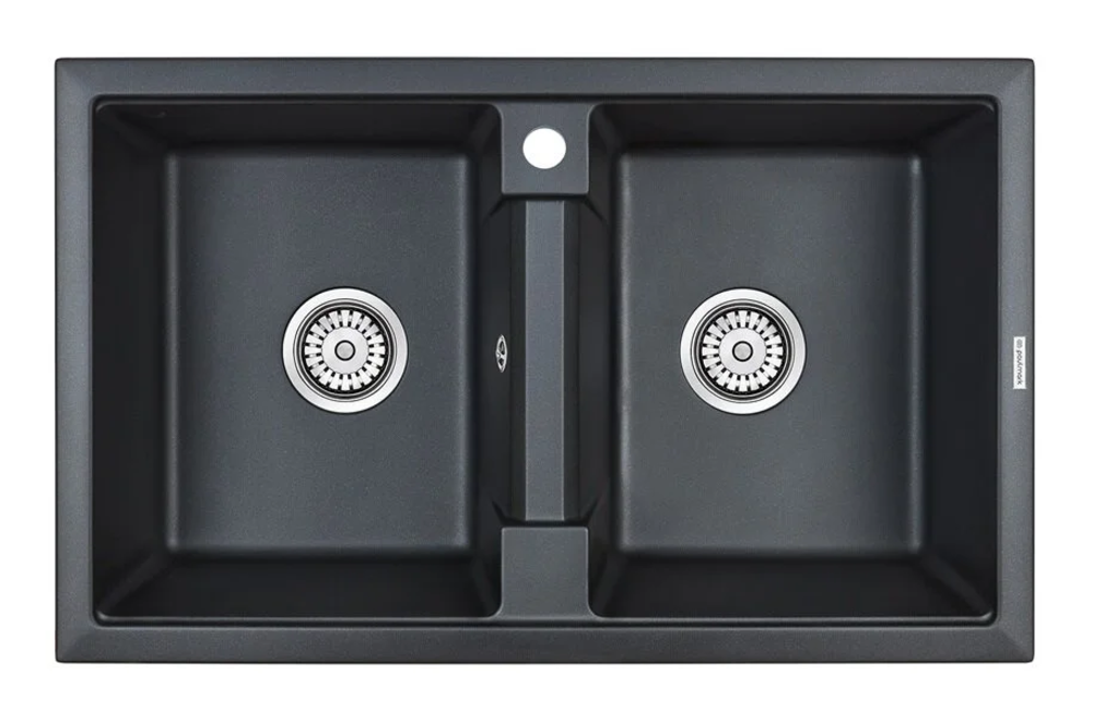 Мойка кухонная Paulmark Tandem PM238150-BLM, 81 см, кварцевая, черный металлик
