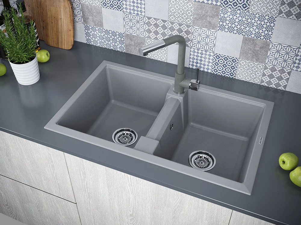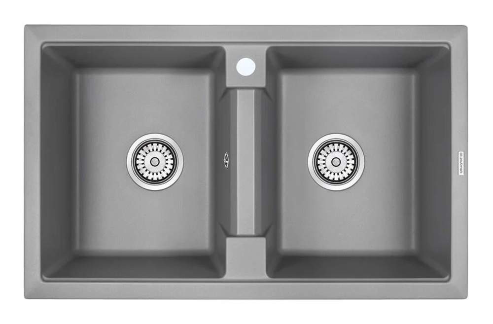 Мойка кухонная Paulmark Tandem PM238150-GRM, 81 см, кварцевая, серый металлик