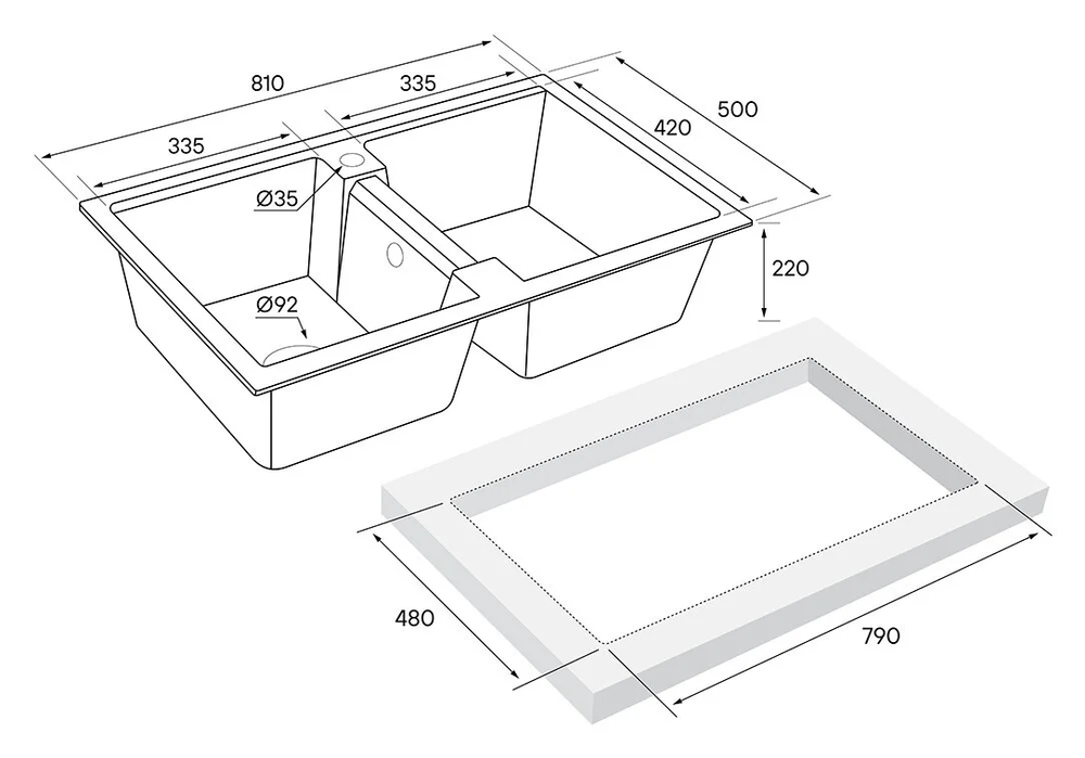 - Размер выреза: 79 x 48 см
