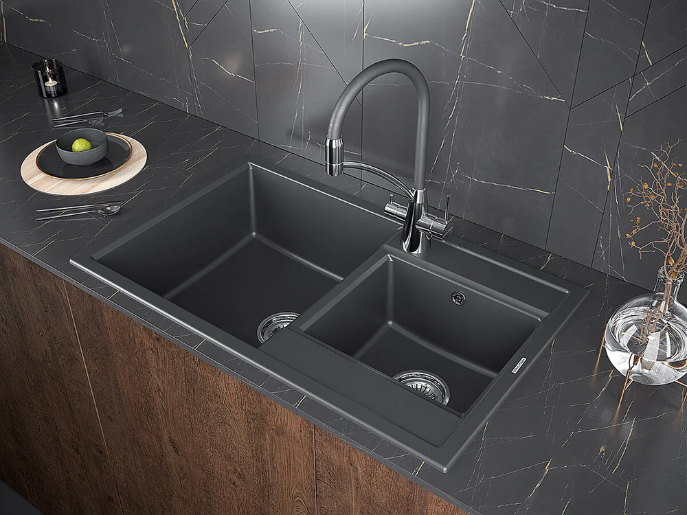 Мойка кухонная Paulmark Tandem PM238250-BL, 82 см, кварцевая, черный