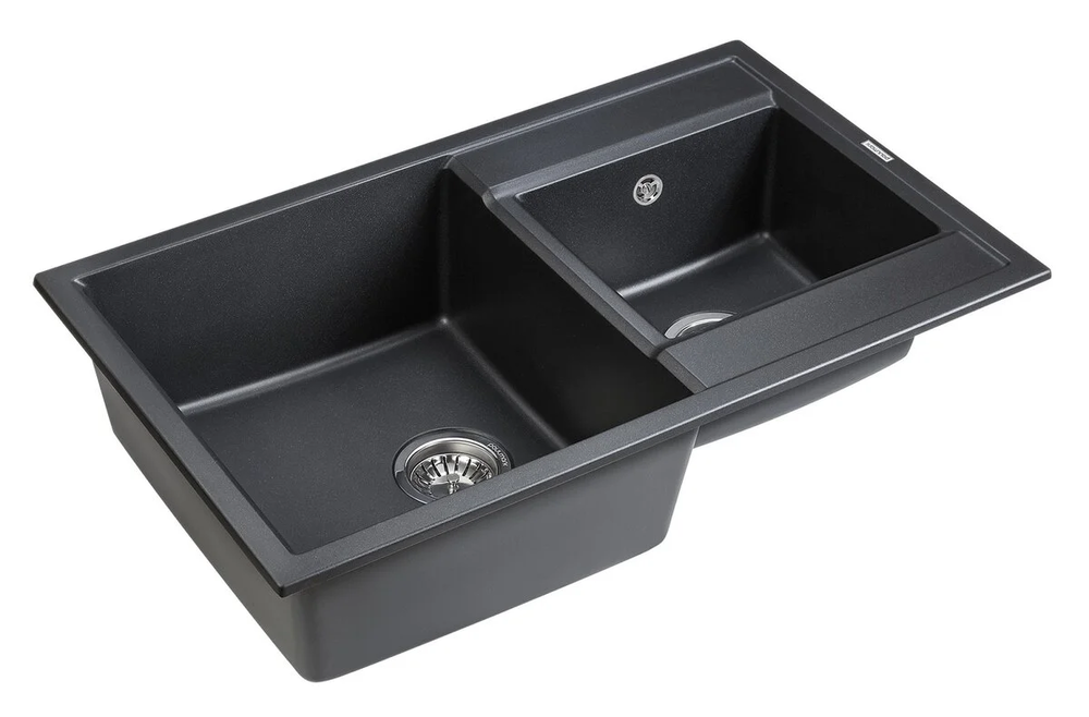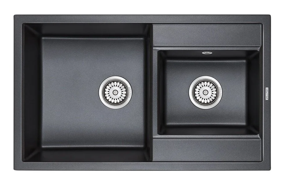 Мойка кухонная Paulmark Tandem PM238250-BLM, 82 см, кварцевая, черный металлик