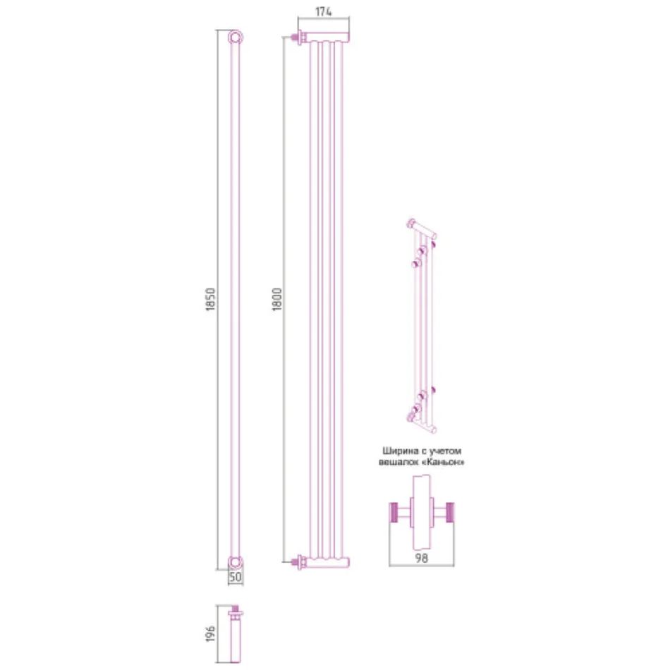 Полотенцесушитель водяной Сунержа Хорда 12-4124-1800, высота 180 см, ширина 5 см, боковое подключение 180 см, цвет белый