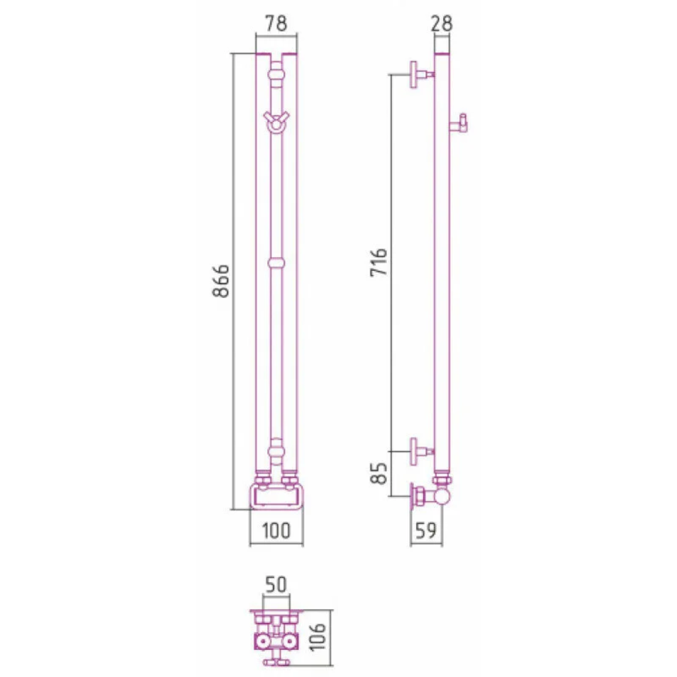 Полотенцесушитель водяной Сунержа Нюанс EU50+ 12-0212-0840, высота 84 см, ширина 5 см, нижнее подключение, цвет белый