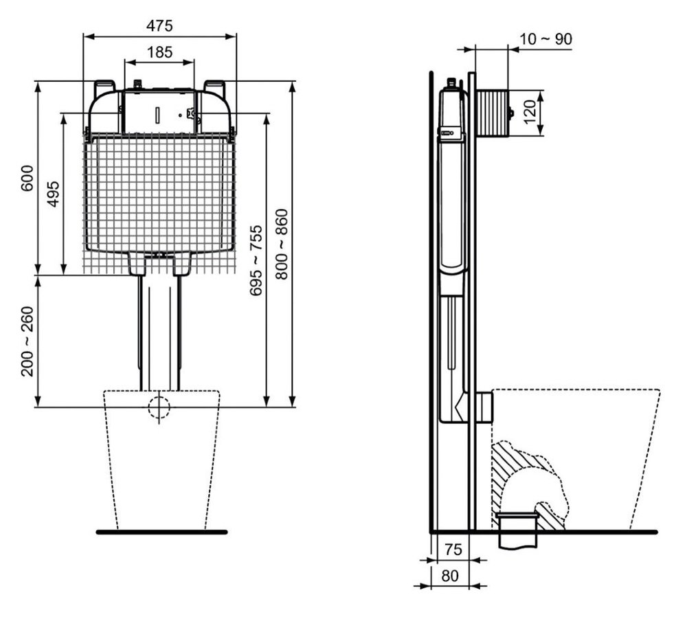 Бачок смывной скрытого монтажа Ideal Standard Prosys R014767 80 M для напольного унитаза
