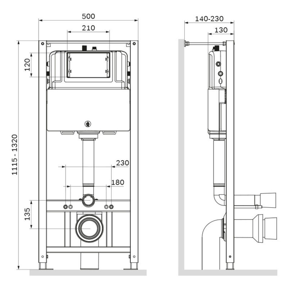 Вертикальные ребра жесткости в конструкции рамы – дополнительная опора в месте давления керамики на стену. Благодаря им инсталляция более универсальная и подходит для унитазов любых размеров, включая унитазы с небольшой контакной поверхностью. Нет необходимости докупать дополнительные аксессуары для монтажа таких унитазов