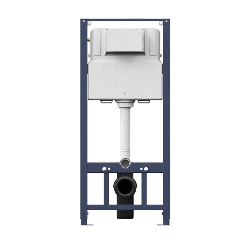 Бачок на стальной раме, смывная арматура, гибкая подводка воды к заливному клапану, монтажная коробка для окна обслуживания, регулируемые по высоте опорные стойки для крепежа в пол, шпильки для крепления к стене, крепежные шпильки для унитаза, патрубки фанового отвода, патрубки для подвода воды к унитазу, прокладка между стеной и унитазом (шумоизоляция), набор крепежа, инструкция.