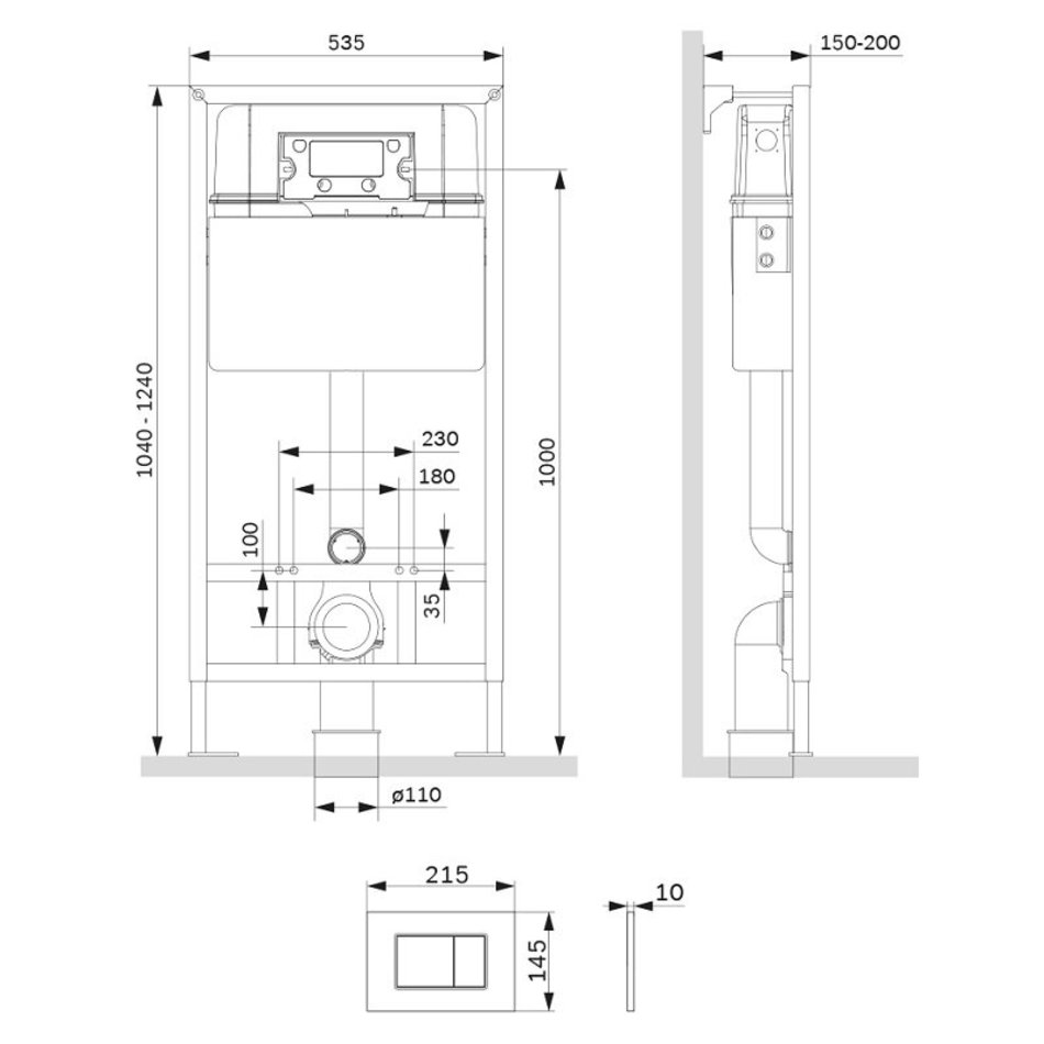 - Оснащение: инсталляция для подвесного унитаза, набор креплений, клавиша, инструкция.