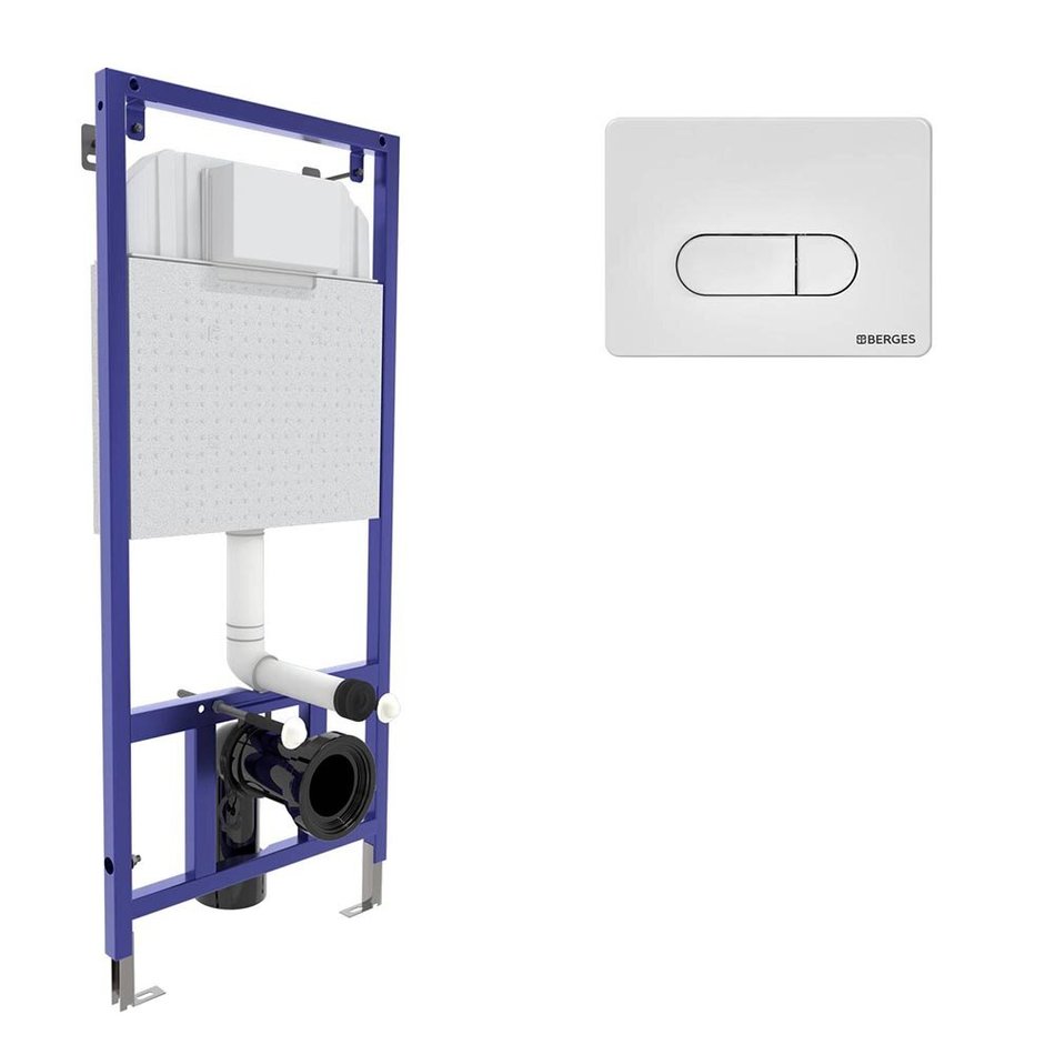 Инсталляция BERGES для скрытого монтажа унитаза кнопка D4, Soft Touch, белая, 040234