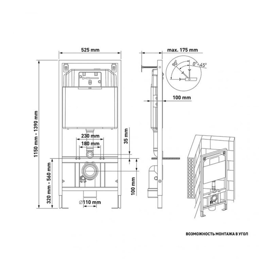 Инсталляция BERGES для скрытого монтажа унитаза кнопка F4, Soft Touch, белая, 040254