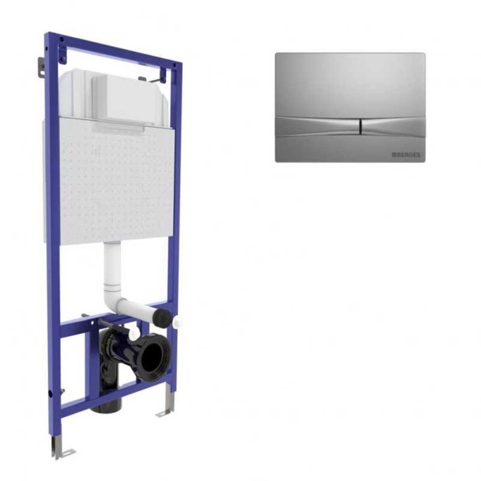 Инсталляция Berges Wasserhaus Novum F2, для подвесного унитаза в комплекте с кнопкой матовый хром, 040252