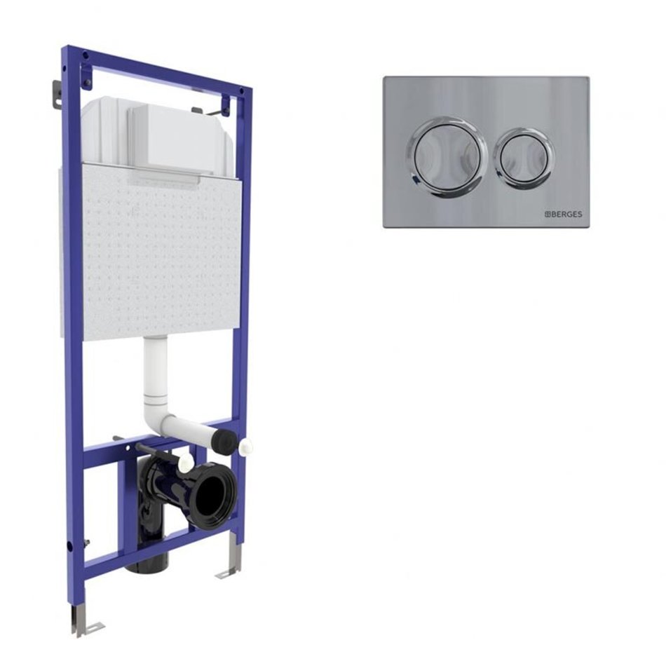 Инсталляция Berges Novum, для подвесного унитаза, кнопка O3, цвет хром глянцевый, 040263